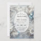 Celebrate your love with the timeless beauty of winter in this elegantly frosted wedding invitation. Featuring delicate white and icy blue florals, shimmering silver leaves, soft feathers, snowflakes, and subtle sparkles, this enchanting design evokes the magic of a snow-dusted wonderland. Perfect for winter weddings, holiday ceremonies, or any romantic event set against a frosty backdrop. The soft gradient centre offers ample space for your custom wording while the ornate border creates a luxurious frame. A stunning choice for couples dreaming of a winter fairytale.