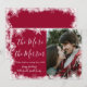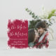 Photo Christmas Pregnancy Announcement Cards. Expecting parents! Modern white swirly hand lettered typography "the more the merrier" script card to share your happy news with family and friends in the holiday season. Features a white snowflake frame overlay on burgundy red or wine red background. You can personalise the design by replacing the sample text and vertical photo. It is preferable to have a darker background photo so that snowflakes are clearly visible. #3343 If You need help or matching items please contact to me!