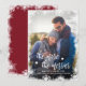 Snowflakes Personalised Photo Christmas Pregnancy Announcement Cards. Expecting parents! Modern white hand lettered typography "the more the merrier" script card to share your happy news with family and friends in the holiday season. Features a white snowflake frame overlay. At the backing red background with white snowy frame. You can personalise the design by replacing the sample text and vertical photo. #3343 If You need help or matching items please contact to me!