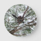 Snowy Pine Cone II Winter Nature Photography Round Clock