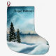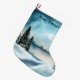 Snowy pine trees near a lake large christmas stocking
