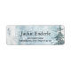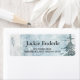 Romantic watercolor of a winter landscape scene. Forest pines in soft falling snow with blue-grey, softened pine, and white tones. Business or personal use rustic address label is ideal for holidays and winter events.