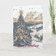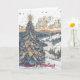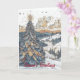 Christmas card features a snowy scene viewed from the top of a hill, with a Christmas tree. Customise the greeting and the message inside the card to your liking.