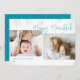 Simple and modern Hanukkah card design features two of your favorite photos with an offset alignment, framed by falling snowflakes. "Happy Hanukkah" appears in modern iced aqua blue casual handwritten script lettering, with your family name and the year at the lower left corner. A unique contemporary design in a horizontal or landscape layout for an on-trend holiday look.