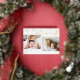 Simple and modern holiday card design features two of your favourite photos with an offset alignment, framed by falling snowflakes. "Peace on Earth" appears in gold foil casual handwritten script lettering, with your family name and the year at the lower left corner. A unique contemporary design in a horizontal or landscape layout for an on-trend holiday look.