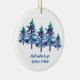 Unique in the world, this Robert Frost poetry Christmas ornament features my own original art -- hand-painted watercolor pine trees against a snowy blue and white background. The text quotes Frost's poem "Stopping By Woods on a Snowy Evening" -- "And miles to go before I sleep." You may change it if for some reason you prefer something else. Personalisation goes on the reverse side in whimsical typography. Beautiful for literary fans and poetry lovers, also anyone who loves winter art.