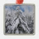 Heavy snow weighs down the boughs of small evergreen trees in this wintry landscape photo taken by Richard H. Fay.
