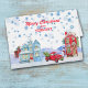 Send a bit of Vermont to your friends and family this Holiday Season, with this cute watercolor design of a whimsical snowy mountain village. Included in the image are colourful houses, a snowman, and a red pickup truck with a Christmas tree in the back. Icy blue snowflakes fall down from the sky. The text in red at the top can be changed to anything you'd like, as can the text on the inside. *Image design credit to EphrazyDesign.