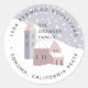 A cosy holiday return address label design with cute hygge vibes, featuring a snowy Christmas village scene. Personalise with your family name and address.