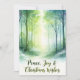 Share the serene beauty of the season with this dreamy watercolor Christmas card featuring a snowy forest under a starlit sky and the message “Peace, Joy & Christmas Wishes.” The back continues the tranquil theme with a soft watercolor night sky fading to white, sprinkled with subtle golden stars, and the heartfelt quote “May Your Heart Be Light This Christmas.” Perfect for nature lovers and those who cherish peaceful, elegant holiday greetings inspired by winter’s quiet magic.