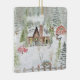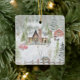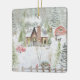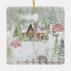 Snowy Winter Christmas Cabin Scene Ceramic Ornament
