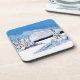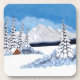 Coasters with a beautiful winter scene including snowy mountains, rustic cabin and snow covered evergreens. The image and text can be personalised. Original artwork by W.B.