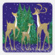 Snowy Winter Deer in Wooded Forest | Blue | Square Sticker