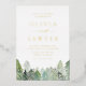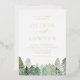 Celebrate your winter wedding with this elegant invitation featuring watercolor evergreen trees and softly falling snow. With a QR code included, guests can easily access your digital RSVP or wedding website. Choose from shimmering gold, silver, or rose gold foil text to add a luxurious, personalised touch. Customise with your names, date, and venue details. This winter wedding invitation is perfect for rustic, woodland, or mountain weddings seeking timeless sophistication.