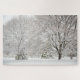This design features a photograph of snow-covered trees in woodland, creating a beautiful scene that evokes the wonder of wintertime.