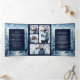 Snowy Winter Forest Photo Collage Navy Wedding Tri-Fold Invitation