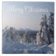 A beautiful snowy winter landscape with text "Merry Christmas" and a template for a family name. The photo was taken in the wilderness in Lappland, Northern Finland.