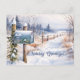 Capture the serene beauty of winter and send warm holiday wishes with our Winter Landscape Christmas postcard. This enchanting card features a tranquil snowy landscape with a winding road, a charming mailbox, and a classic rail fence. It's the perfect way to spread the magic of the season your friends, customers or colleagues! (Created using generative AI tools.)