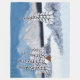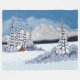 A fleece blanket with a beautiful winter scene including snowy mountains, rustic cabin and snow covered evergreens.  Original artwork by W.B.