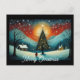 Snowy Winter Night Mountain Village Christmas Tree Holiday Postcard