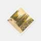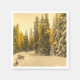 Paper napkins with a beautiful nature photograph. An isolated winter path with tall snow covered pine trees.