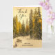 Thank you greeting card with a beautiful nature photograph. An isolated winter path with tall snow covered pine trees.