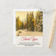 Thank you postcard with a beautiful nature photograph. An isolated winter path with tall snow covered pine trees.