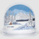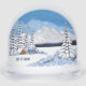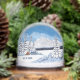 A globe with a beautiful winter scene including snowy mountains, rustic cabin and snow covered evergreens. The image and text can be personalised. Original artwork by W.B.