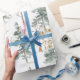 Snowy Winter Trees Pattern Gold Typography Wrapping Paper