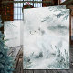 Watercolor painted white arctic fox in a blustery snowy winter scene.