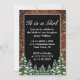Baby girl birth celebration invitation. Rustic brown wood, snowing background and snowy forest. Cosy vintage country style. More items are available in this style in our store. You can edit the design further, change colours, fonts and add extra text by clicking "customise further" link.