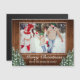 Christmas greeting postcard with your photo. Rustic brown wood, snowing background and snowy forest. Cosy vintage country style. More items are available in this style in our store. You can edit the design further, change colours, fonts and add extra text by clicking "customise further" link.