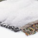 A quality printed throw has its advantages. This is a much finer weave throw than its loopier cousins, and though lighter, it is worth the investment for custom room accessorizing. The back is much prettier than the typical brown, and the fringe on the long sides very vivid, the selvage nicely done. Before photographing, I washed the throw in cold water, delicate, with a thicker woven throw the same size. On tumble dry low, this throw was dry in half the time as the other. This is a very practical quality if you use throws for furniture covers or to wrap up in frequently. The sleekness of the fabric makes it a great layer for accenting or protecting without the feeling of sitting on too much stuff. Perfect for napping or when you feel a light chill coming on. The color printing is beautiful and on this fabric, matched the design and color of my Photoshop image. This is an advantage for blending room fabrics and colors. The fringe on the short sides prints the colors from the design image and therefore varies from the side fringe. I streaked a white fractal line through the plaid pattern to give the illusion of weaving. This printed as crisp as an illusory thread, and put some white in the short side fringe, showing another advantage of print vs loomed- for artistic purposes, line lines, detail, and color integrity can be planned and preserved. My loomed throws have color limitations and more of a needlepoint texture. Print throws reproduce an exact image. The throw felt a little stiff straight out of the package, but this went away in the first delicate wash. Of course I searched the wash water for ink or bleeding and there was none.