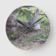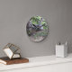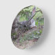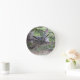 Wall clock featuring a snuggly grey bunny resting under a tree. Created by D. Best in North Carolina.