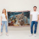 This throw blanket features, Snuggles, an adorable playful puppy nestled cosily under a beautifully decorated Christmas tree waiting for you to pick him up to cuddle.