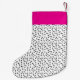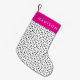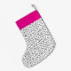 Personalised stockings give gift giving a special touch for the holiday season. This design features a modern black and white spotted pattern with a touch of bright pink.