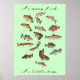 Poster of several fish with names beneath them on customizable background color and with customizable text, "So many fish, so little time."