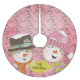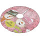 So Many Snowman holiday tree skirt features a vintage pink background with little brown snowmen and snowflakes and a cute snowman couple in top hat and a pink winter hat and striped scarves. You can easily add your family name to the mustard yellow banner before ordering to personalise it! This cute snowman design Christmas tree skirt makes a great gift or get one for yourself to enjoy for years to come!po