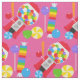 If you love the candy you'll love this fun, colourful So Much Candy fabric featuring a pink background with a gumball machine full of gumballs, starlight swirl candies, lollipops, and wrapped roll candies in bright colours!