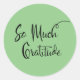 So Much Gratitude Modern Script Typography Green Classic Round Sticker
