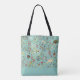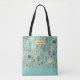 So Much Whimsy tote bag, colourful and fun, features birds, and lots of vines and flowers of coral, dark brown, cream, and green on a pale blue background. You can add your name to personalise this pretty bag!