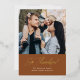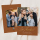 Modern Thanksgiving card featuring your family's photo at the top of the design. The phrase "So Thankful" is displayed in a handwritten gold foil script with a pecan-brown background. The photo Thanksgiving card reverses to display the year in white lettering with an additional photo.