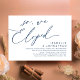 Mark the beginning of your forever with elegance using our romantic contemporary classy navy blue themed wedding elopement happily ever after lunch, brunch, reception dinner party celebration invitation card, "So, We Eloped". Perfect for couples extending their joyous occasion, this invitation exudes sophistication with a hint of playfulness, setting the stage for a memorable event. Adorned with a timeless modern script design theme, it adds a touch of refined charm to your festivities. Crafted by TeeshaDerrick, this invitation promises to beautifully capture your love story.