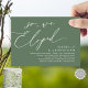 Mark the beginning of your forever with elegance using our romantic contemporary rustic sage green greenery theme wedding elopement happily ever after lunch, brunch, reception dinner party celebration invitation card, "So, We Eloped". Perfect for couples extending their joyous occasion, this invitation exudes sophistication with a hint of playfulness, setting the stage for a memorable event. Adorned with a timeless modern script design theme, it adds a touch of refined charm to your festivities. Crafted by TeeshaDerrick, this invitation promises to beautifully capture your love story.