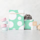This wrapping paper has a mid-century modern design of white circles of varying sizes on a field of pale green. If you like the design but prefer different colours, message me.