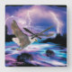 This "One of a Kind" Clock...Features A Majestic Bald Eagle Soaring Over a Moonlit River