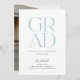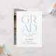 Celebrate your academic milestone with our sleek and elegant Graduation Invitation! With its minimalist and modern design, this invitation features large, robin's egg blue letters that spell out "GRAD," followed by the graduate's name tastefully presented on the front. Beneath, you'll find all the essential party details, ensuring your loved ones can mark their calendars and join in on the celebration. The back showcases a full-bleed photo of your choice, adding a personal touch to your announcement. Make your graduation memorable and stylish with this beautifully designed invitation that reflects your achievement and personality.