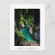 Photo postcard of Tolmin Gorge with moss covered steep cliffs and magnificent blue water in Soca Valley, near Kobarid in Slovenia with a white border and the text 'Soča valley'.