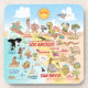 Bright and happy scene - a cartoon map view of Southern California - charming characters enjoy the warm SoCal sun - Los Angeles, San Diego, Anaheim, Santa Barbara, Riverside, Palm Springs and El Centro are featured - Anza Borrego Desert State Park and Joshua Tree National Park are included as well as the border cities of Tijuana, Tecate and Calexico in Mexico.
