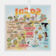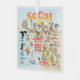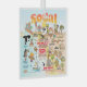 Bright and colourful scene offers a spectacular view of Southern California - wacky characters frolic on the beach and desert of SoCal showcasing Los Angeles, Orange County, San Diego, Santa Barbara, Riverside, Palm Springs, Anza Borrego and Joshua Tree parks as well as the border cities of Tijuana, Tecate and Mexicali. This charming scene has it all – a surfer hangs ten while a killer whale leaps, zoo animals greet the tourists and much more…